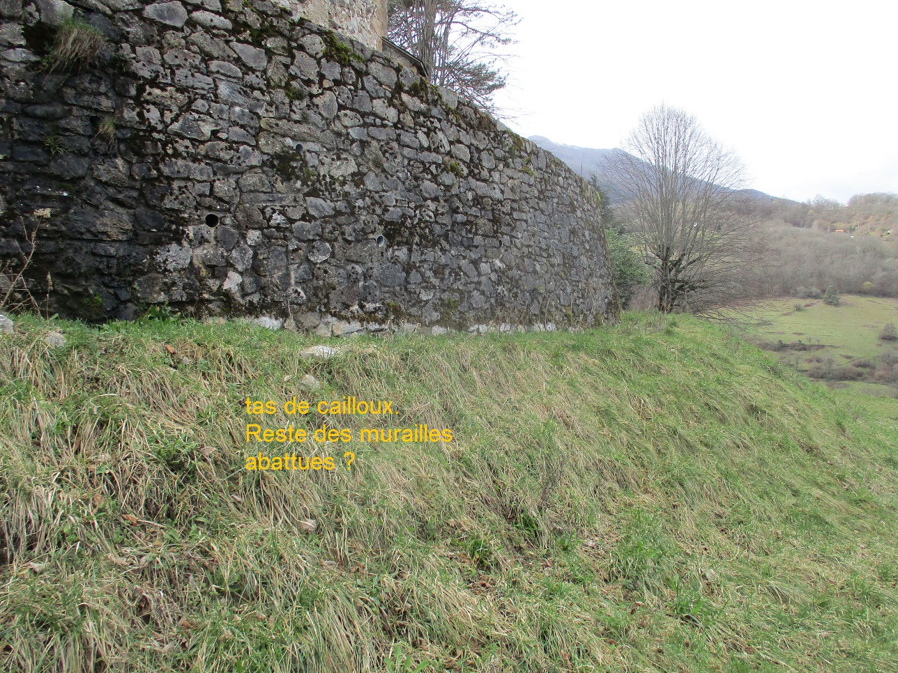 Démolition du château médiéval de Castillon-en-Couserans, dont il ne reste plus que des vestiges, murs arasés et structures enfouies.